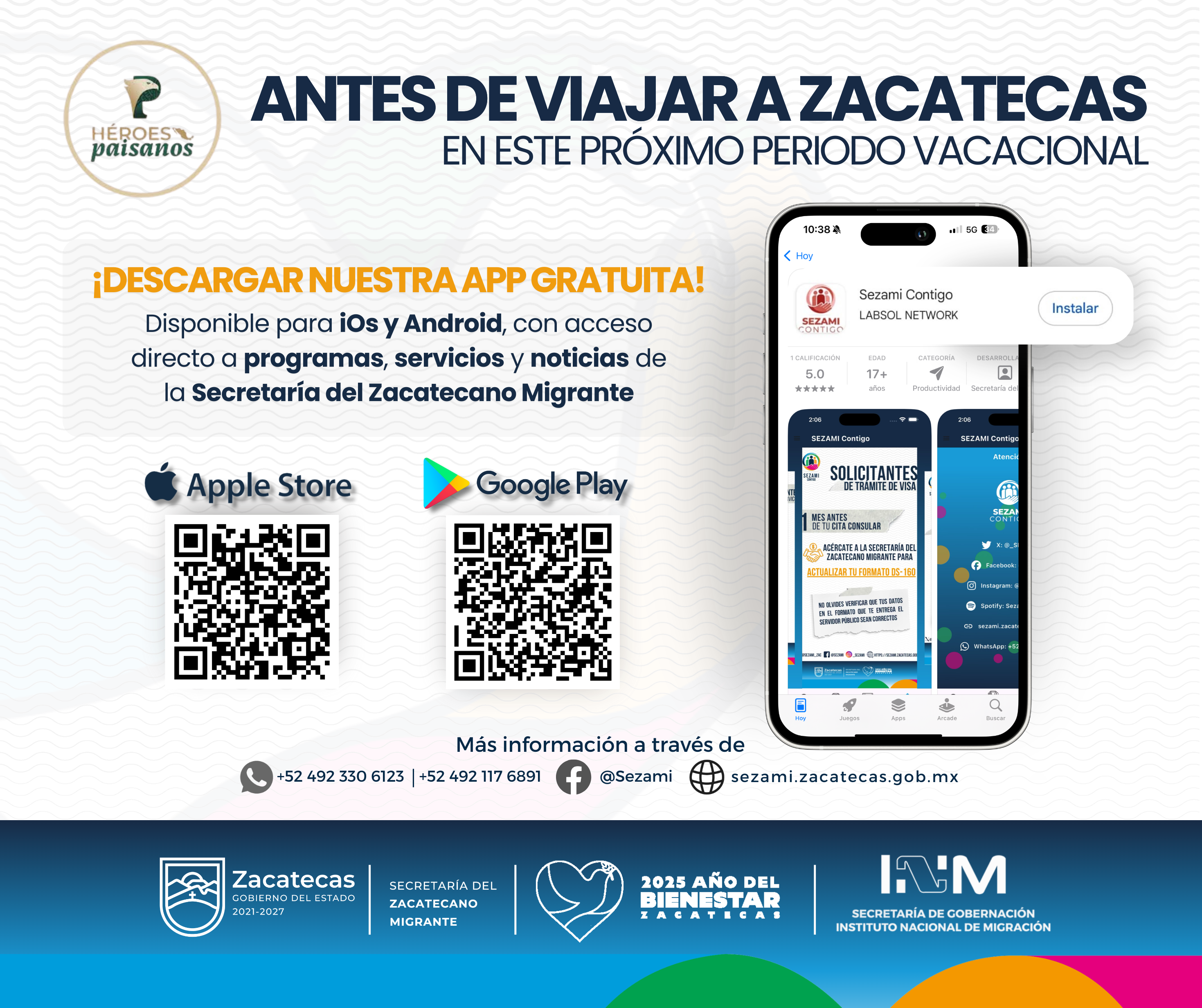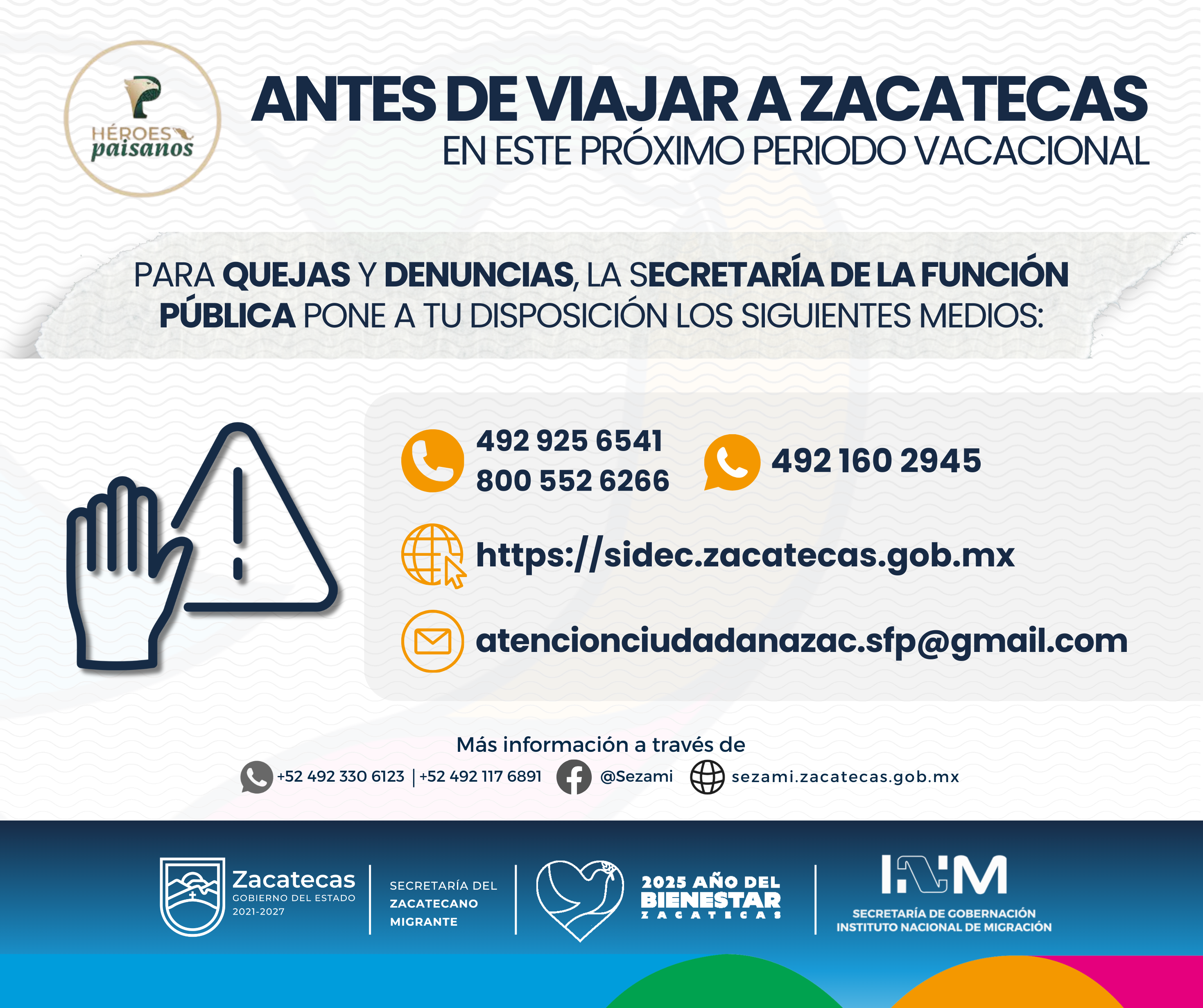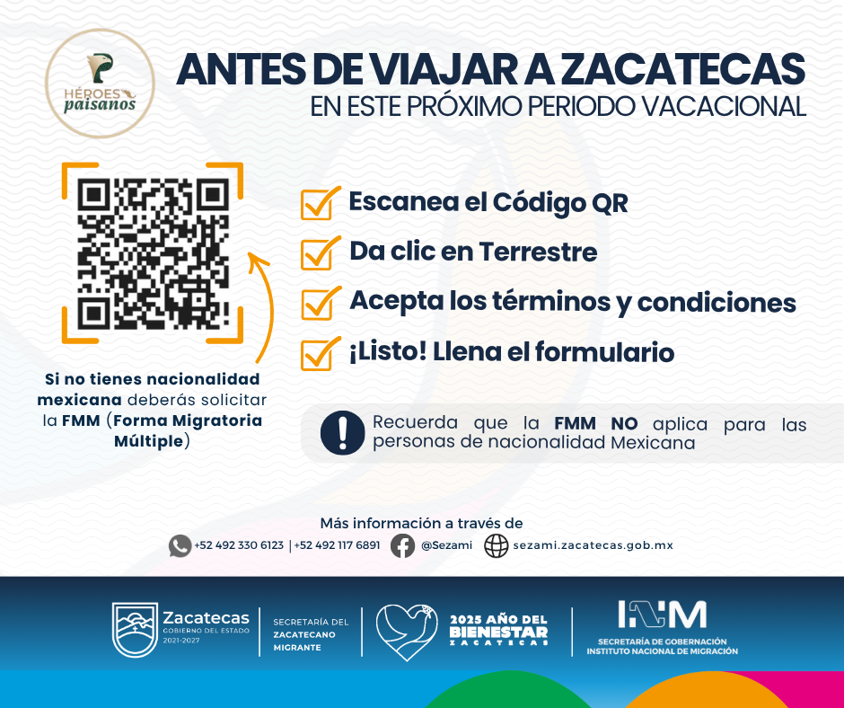 | SEZAMI – Oficina Central | Atención al Migrante | 492 491 5000 Ext. 37100 | sezami.zacatecas.gob.mx |